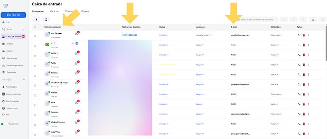 Nome do Visitante: Nome do lead que interagiu com o bot.